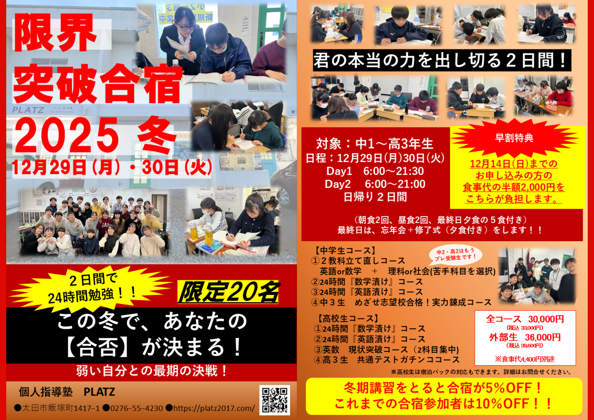 群馬県太田市にある高校・大学受験専門 個人指導塾「PLATZプラッツ」は、お子様が竹のように太陽に向かい、どんな逆境にも耐えうる精神力・体力・知力を身につけ、しなやかに、そして真の美しさをもった人間となれるように日々邁進していくことを全力で応援します。