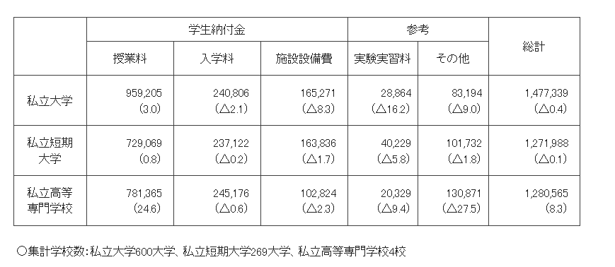 文部科学省「私立大学等の令和5年度入学者に係る学生納付金等調査結果について」